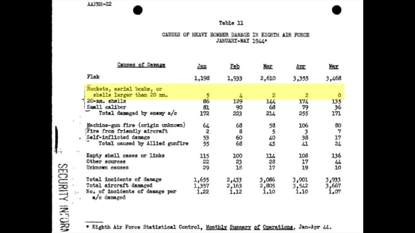 German fighters accounted for more bomber losses than ground artillery until May 1944, after which flak became the dominant threat in returning-aircraft reports. That shift reflects survivor bias because many aircraft hit by cannons never returned.