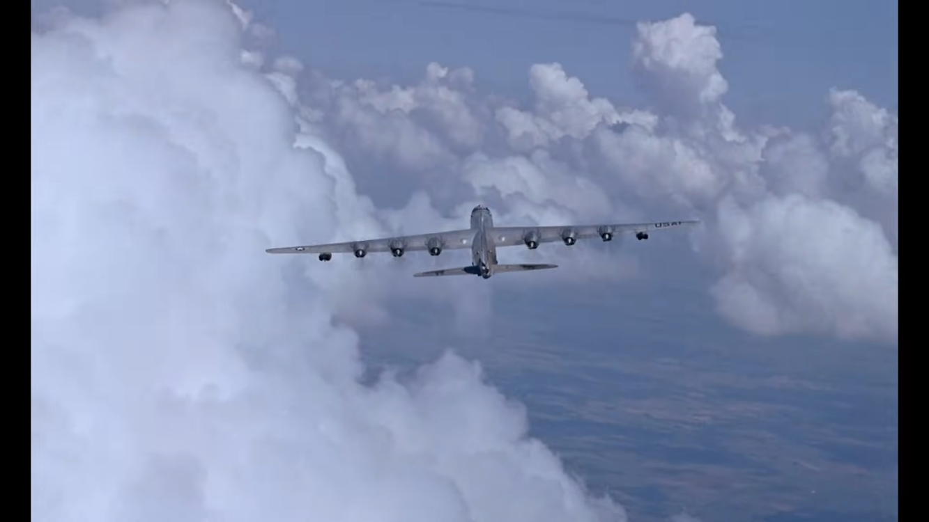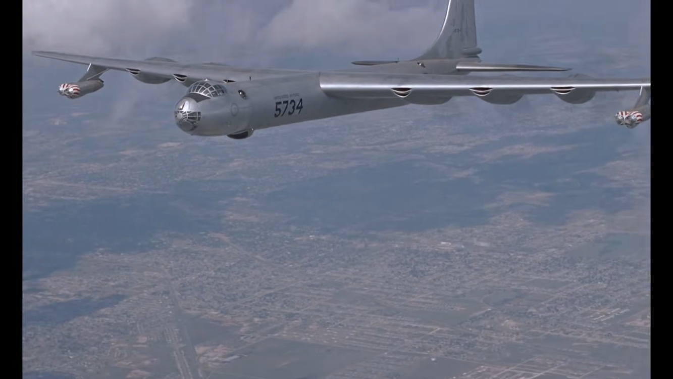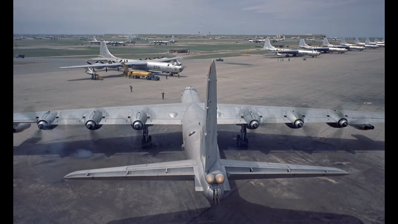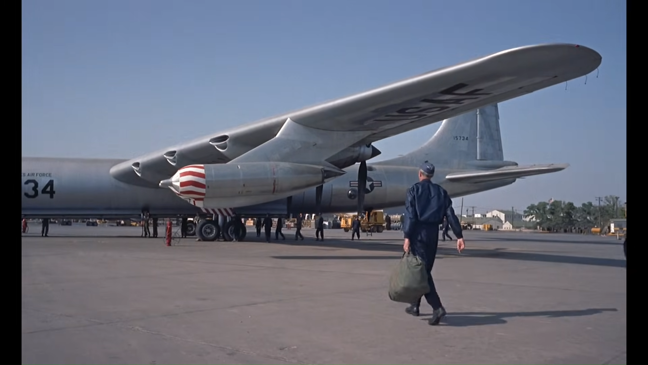 The Paramount cameras caught that configuration from angles no previous film had attempted, using actual USAF aircraft and cooperation from Strategic Air Command to document a machine that most Americans had never seen and fewer still understood.