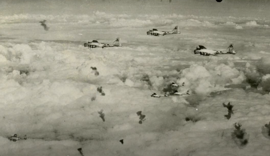 Each B-17 carried thousands of gallons of fuel and oxygen at 25,000 feet—one hit could ignite the aircraft instantly. Still, under Major John Kidd’s leadership, formations stayed tight to maximize defensive fire. When the bombers finally reached Schweinfurt, they dropped over half a million kilograms of explosives with remarkable accuracy, striking several key factory buildings.