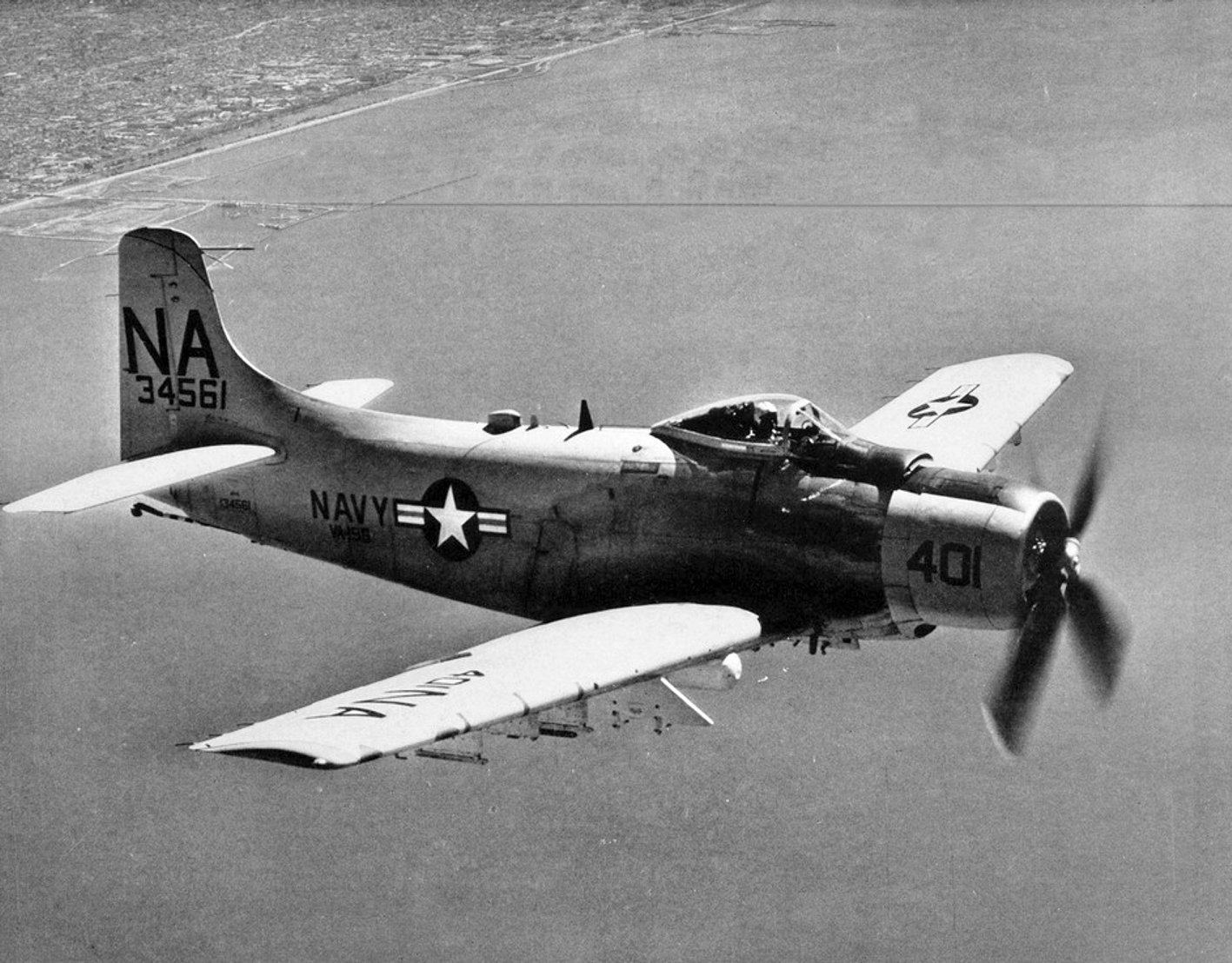 On June 20, 1965, the sky over North Vietnam turned into a scene no one expected. A pair of MiG-17s, fresh from downing an American F-4 Phantom, prowled the skies for more kills. Instead of supersonic jets, what emerged through the clouds were four Douglas A-1 Skyraiders—straight-winged relics from another era. Slow, loud, and loaded down with ordnance, they looked like sitting ducks. But that night, the MiGs would learn that this piston-powered brute had teeth.