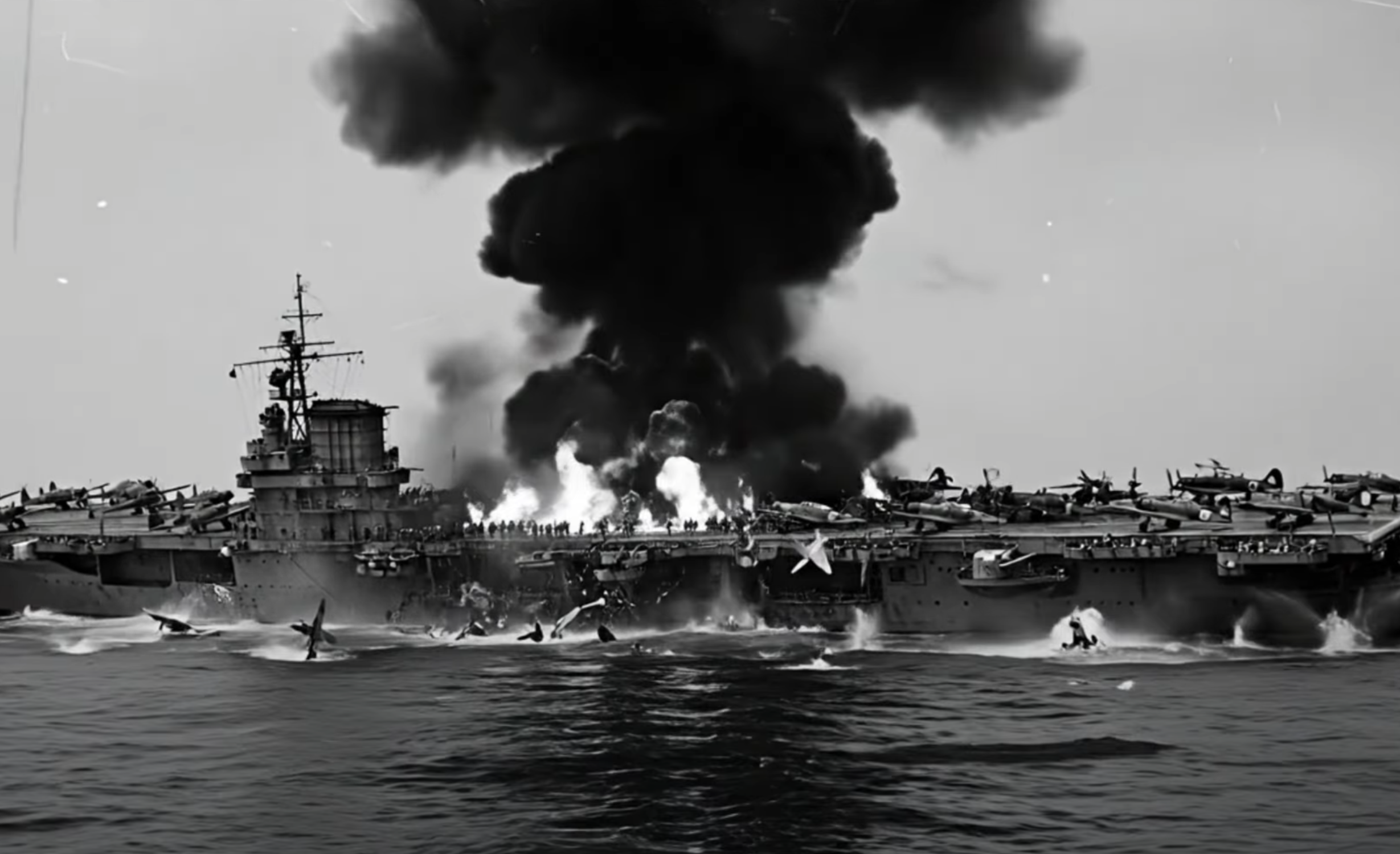 The result was disastrous for Japan. Hellcats tore through the incoming formations with deadly precision. American pilots later described the scene as a “turkey shoot.” Zeros and dive bombers burst into flames, spiraling into the sea. Only a handful broke through to attack the carriers, causing little damage. By midday, nearly 250 Japanese planes had been destroyed. In one day, Japan’s air superiority vanished.