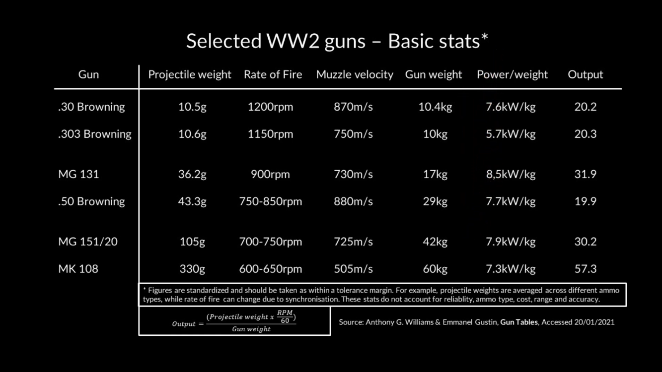 Average aerial gunnery accuracy in WWII was low across all air forces. The comparison between rounds fired and confirmed kills versus claimed kills makes this painfully clear. More guns with lower individual destructive power versus fewer guns with higher destructive power per hit are genuinely different solutions to the same problem of a pilot getting one brief firing opportunity against a small fast target.