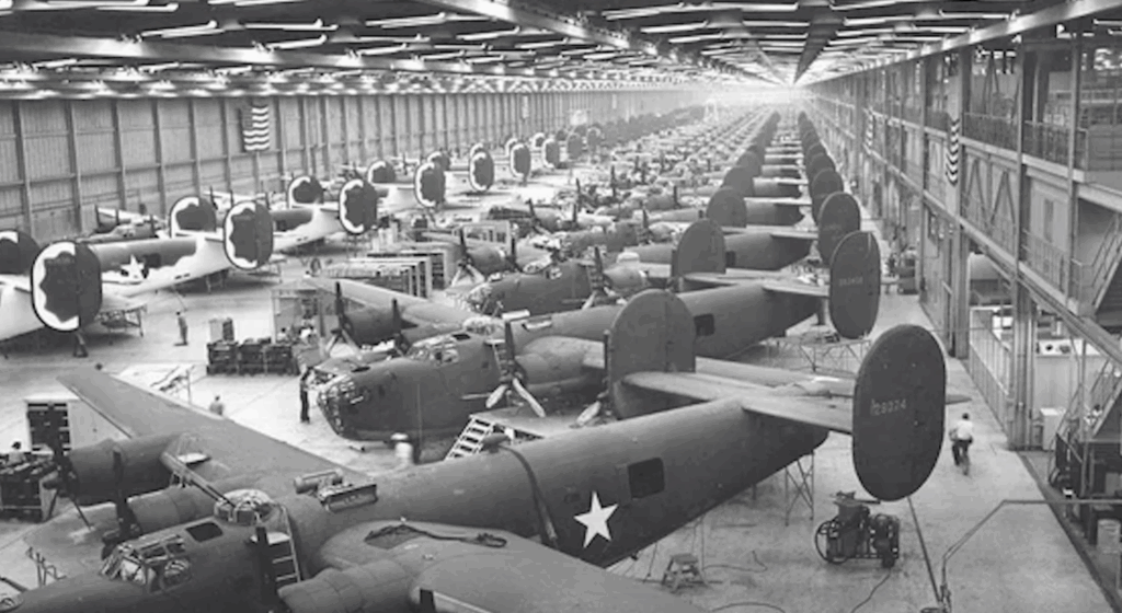 In 1939, the U.S. Army Air Corps wanted a bomber that could fly farther, faster, and carry heavier loads than the famous B-17 Flying Fortress. The Consolidated Aircraft Company responded with an ambitious new design called the Model 32, soon renamed the B-24 Liberator. It featured sleek, high-lift wings, a deep fuselage, and four powerful engines that gave it an impressive range of 2,000 miles and the ability to haul up to 12,000 pounds of bombs. At its production peak, one B-24 rolled off the assembly line every hour, with more than 18,000 built—more than any other heavy bomber in history.