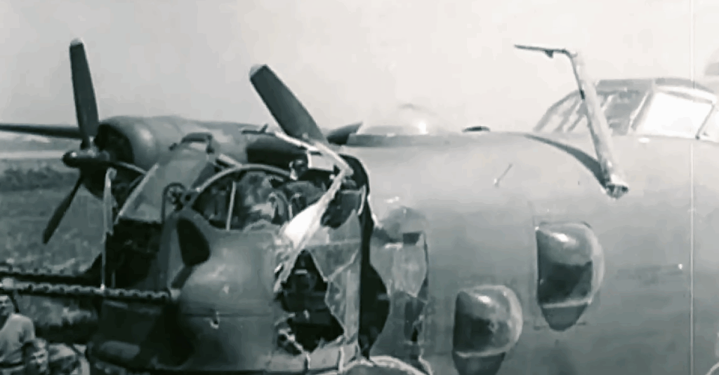 Before even reaching the target, disaster struck when a lead bomber crashed into the sea, killing the navigation leader. Clouds scattered the formation, and by the time the bombers reached the city, defenses were ready. They flew only 250 feet above the ground—low enough to evade radar but directly into anti-aircraft fire. Flak, machine guns, and fighter planes tore through them. Bombers exploded midair, collided, or slammed into buildings. One was hit head-on by an 88mm shell and crashed into the gun that fired it. Another went down in a city prison, killing more than 50 civilians.