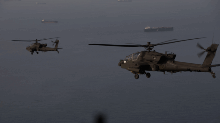 CENTCOM Reveals Apache Helicopters Operating Over Hormuz as Iran Reimposes Limits