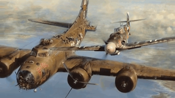A lone German Bf 109 pilot spotted the crippled bomber from miles away and moved in to intercept.