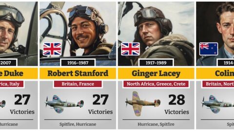 Featuring some of the deadliest fighter aces of the Royal Air Force during the Second World War, this video highlights the high-scoring pilots from across the United Kingdom and the wider Commonwealth, including South Africa, New Zealand, Ireland, Scotland, and Wales.