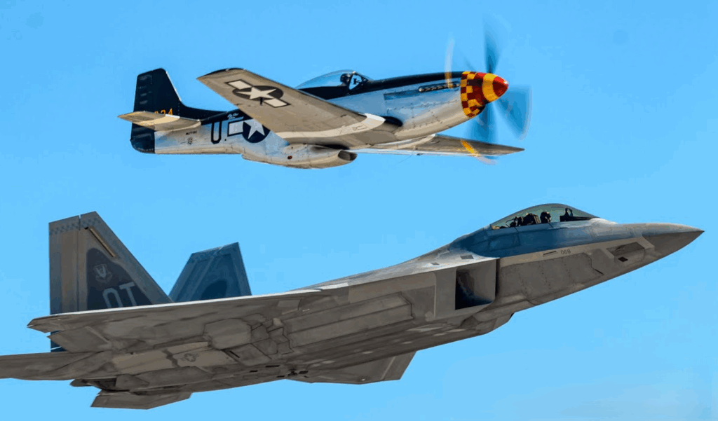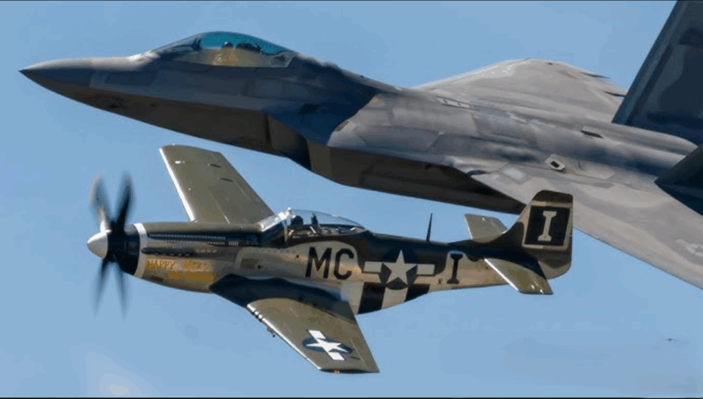 That aircraft would be the F-22 Raptor. Built decades after the war, it represents the height of modern air combat. Its design allows it to fly faster, higher, and deadlier than anything from the 1940s. Its supersonic speed exceeds 1,700 kilometers per hour, and it can cruise at that pace without using afterburners. In contrast, the best fighters of the war—such as the Spitfire, Mustang, and Zero—barely reached 530 kilometers per hour.