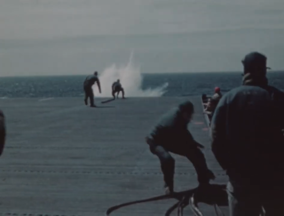 Two cameramen captured the event from different angles. One filmed from the flight deck while another recorded from higher in the carrier’s superstructure, preserving one of the most haunting examples of how dangerous carrier aviation remained even far from combat.