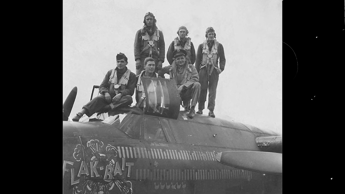 The bomber was assigned to Lieutenant James L Farrell and five crewmen in the summer of 1944. Farrell named the aircraft Flak Bait after his family dog Flea Bait. The aircraft flew its first seventy missions with this crew and took part in strikes against airfields, rail yards and road networks across occupied Europe.