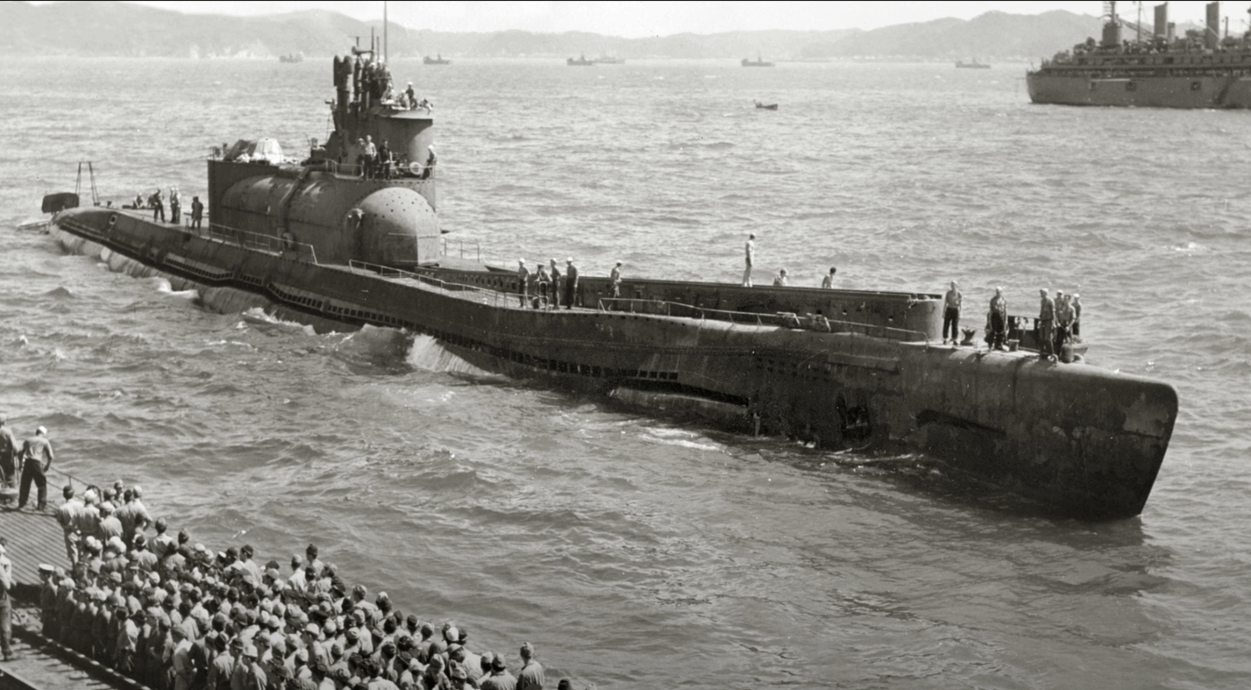Only three of these giant submarines were completed before the war ended. They never carried out a combat mission. Japan surrendered in August 1945, and the vessels were handed over to American forces. Sailors who inspected them were astonished at their size and concept.