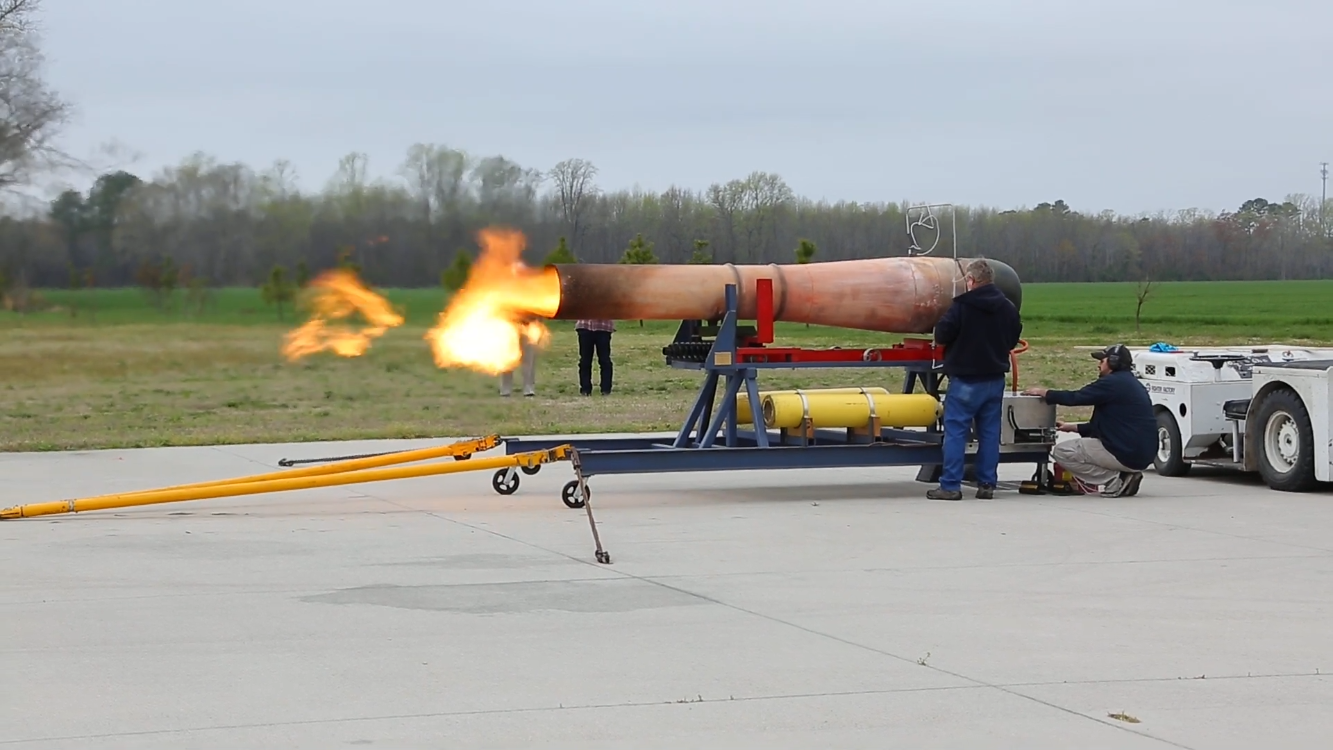 The result is a distinctive “buzzing” sound and dramatic flames from the exhaust. That fiery show, captured at the museum, is close to what wartime observers would have seen during a V-1 ramp launch!