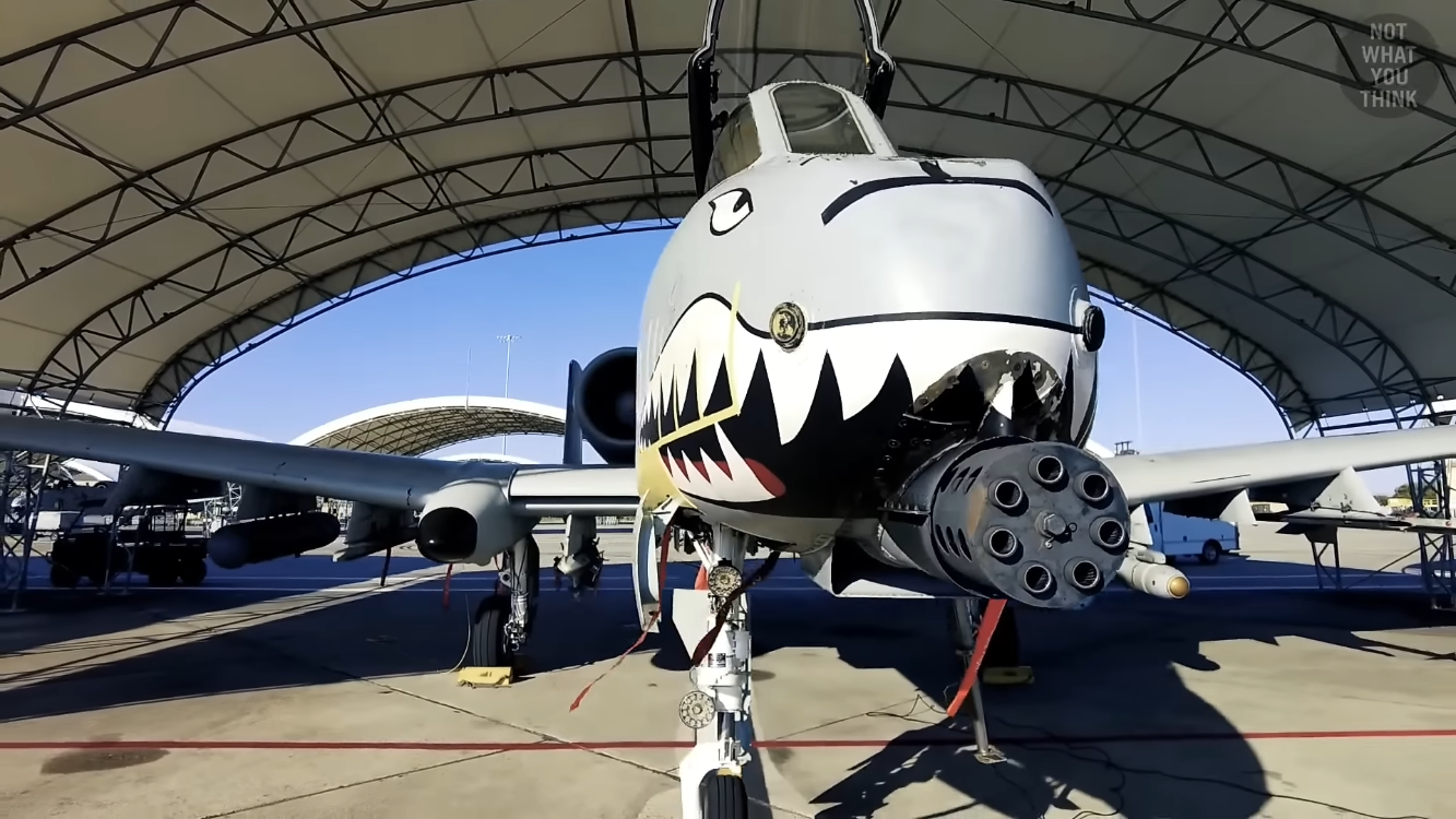Survivability drove much of the A-10’s design. The aircraft could stay in the air with severe damage. The cockpit sat inside a titanium bathtub designed to withstand 23 mm hits. The landing gear remained slightly exposed when retracted so the aircraft could roll during a belly landing. The gun’s placement near the center kept recoil aligned with the jet, which pushed the nose gear off to the side. Large wings carried up to sixteen thousand pounds of weapons.
