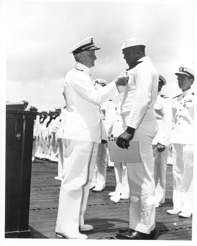 In the months after the attack, Miller’s actions became known across the United States. In May 1942, he was awarded the Navy Cross by Admiral Chester W. Nimitz, commander of the Pacific Fleet, in a ceremony at Pearl Harbor. He was the first Black sailor to receive this decoration, which at the time was the third-highest award for valor in the Navy. His citation praised his devotion to duty, courage, and disregard for his own safety as he helped his shipmates and fired on the enemy.