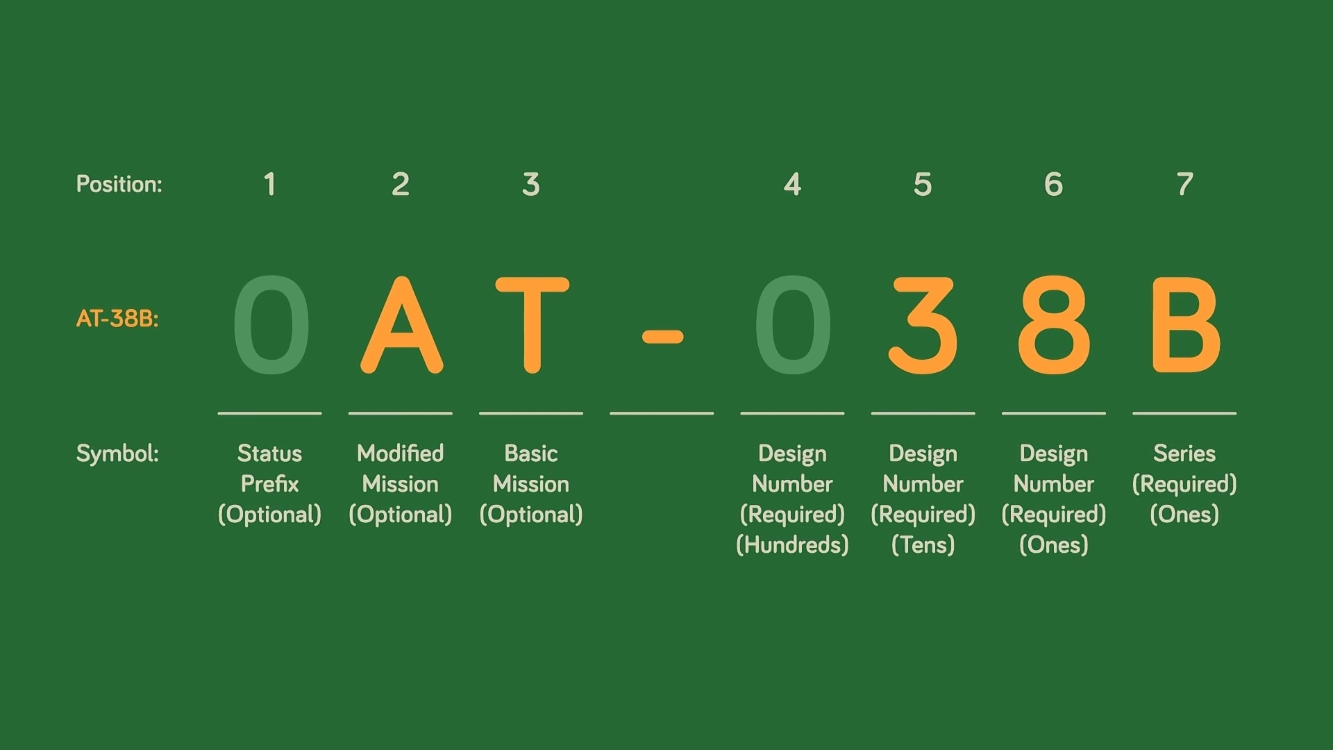 Each aircraft designation includes several components. A basic mission letter defines the aircraft’s primary role. Additional letters can indicate modified missions, special status, or vehicle type. A number identifies the design, while a series letter shows the version.