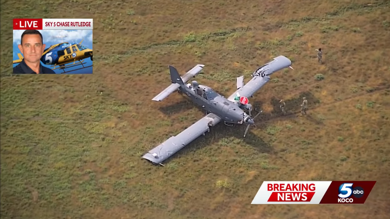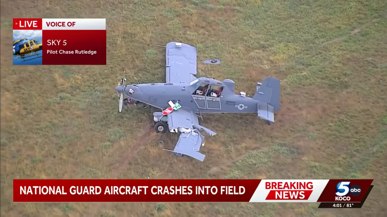 Oklahoma City emergency crews rushed to a field near Southeast 119th and Sooner Place after a U.S. Air Force OA-1K Skyraider II went down Thursday afternoon. The aircraft, operated by the 492nd Special Operations Wing out of Will Rogers Air National Guard Base, was on a routine training mission when it suffered apparent engine trouble and clipped two power poles during its descent.