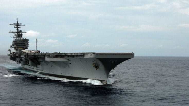 USS George H.W. Bush (CVN-77) arrived in the Indian Ocean this week, joining USS Gerald R. Ford (CVN-78) and USS Abraham Lincoln (CVN-72). The deployment marks one of the largest U.S. naval buildups in the region in years.