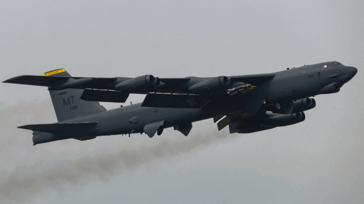 U.S. B-52s Depart RAF Fairford Fully Loaded with JDAM Strike Payloads