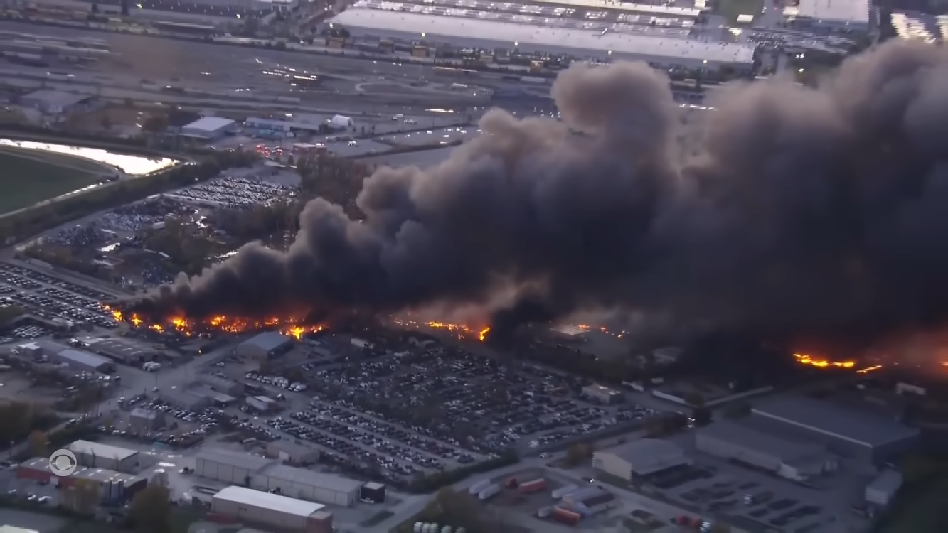 The aircraft was carrying roughly 38,000 gallons of fuel when it struck an industrial corridor south of the airport, igniting several nearby buildings. Fires engulfed a recycling center that took a direct hit, as well as an auto parts shop where multiple employees were unaccounted for.