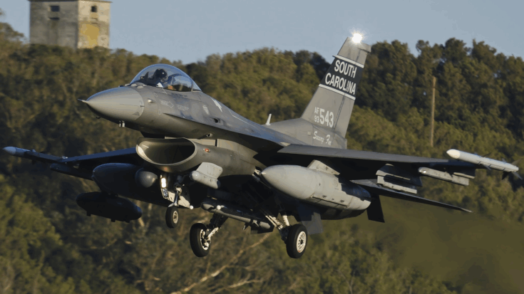 The aircraft identified in the photos belong to the South Carolina Air National Guard’s 169th Fighter Wing, often called the “Swamp Foxes.” Markings on the vertical stabilizers confirmed their origin. Each F-16CM Block 52 carried two AGM-158 missiles, mounted under the wings. These weapons are designed to strike heavily defended targets from long distances, allowing pilots to launch attacks without entering dense air defense zones. Military analysts view the deployment as part of a broader shift toward stand-off operations intended to reduce risk to aircrews.