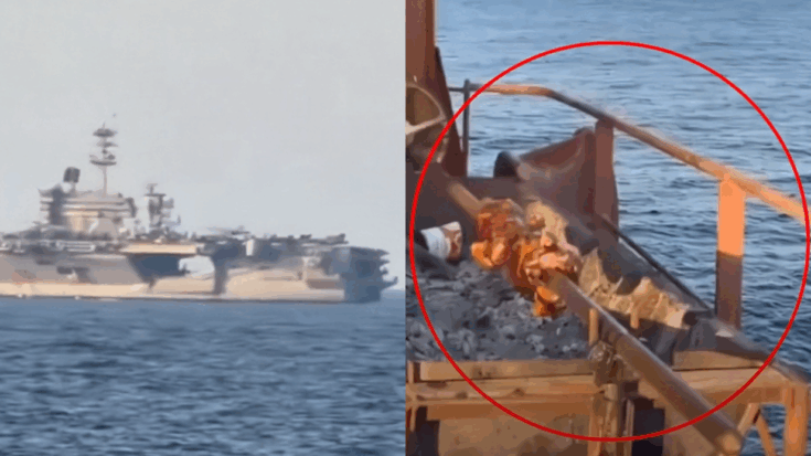 The video and photos circulating online show the carrier’s flight deck activity as jets climb into the sky and then return for arrested landings, offering a vivid look at how carrier aviation continues to operate even under complex conditions.