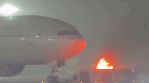 Watch Fire Erupts Beneath Nose of Etihad Boeing 777 at Delhi Airport