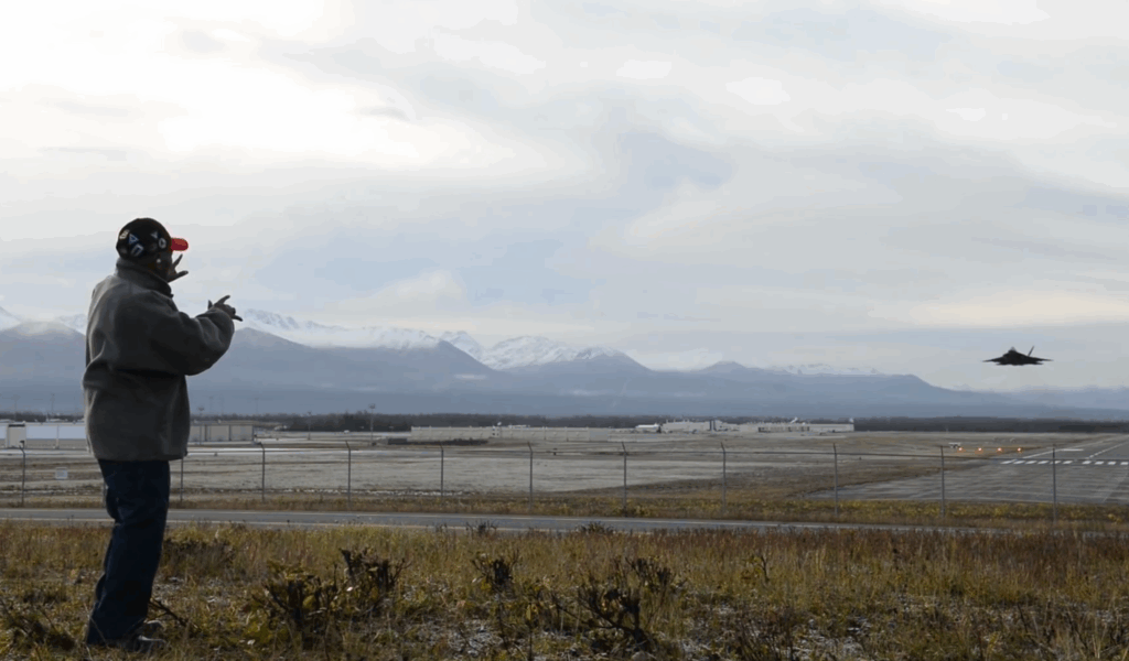 That perspective changes as an F-22 Raptor performs low, fast passes in front of him. Edwards watches closely as the jet climbs, turns, and thunders across the sky with ease. He notes how clear the progress is, not just in speed, but in control and presence.