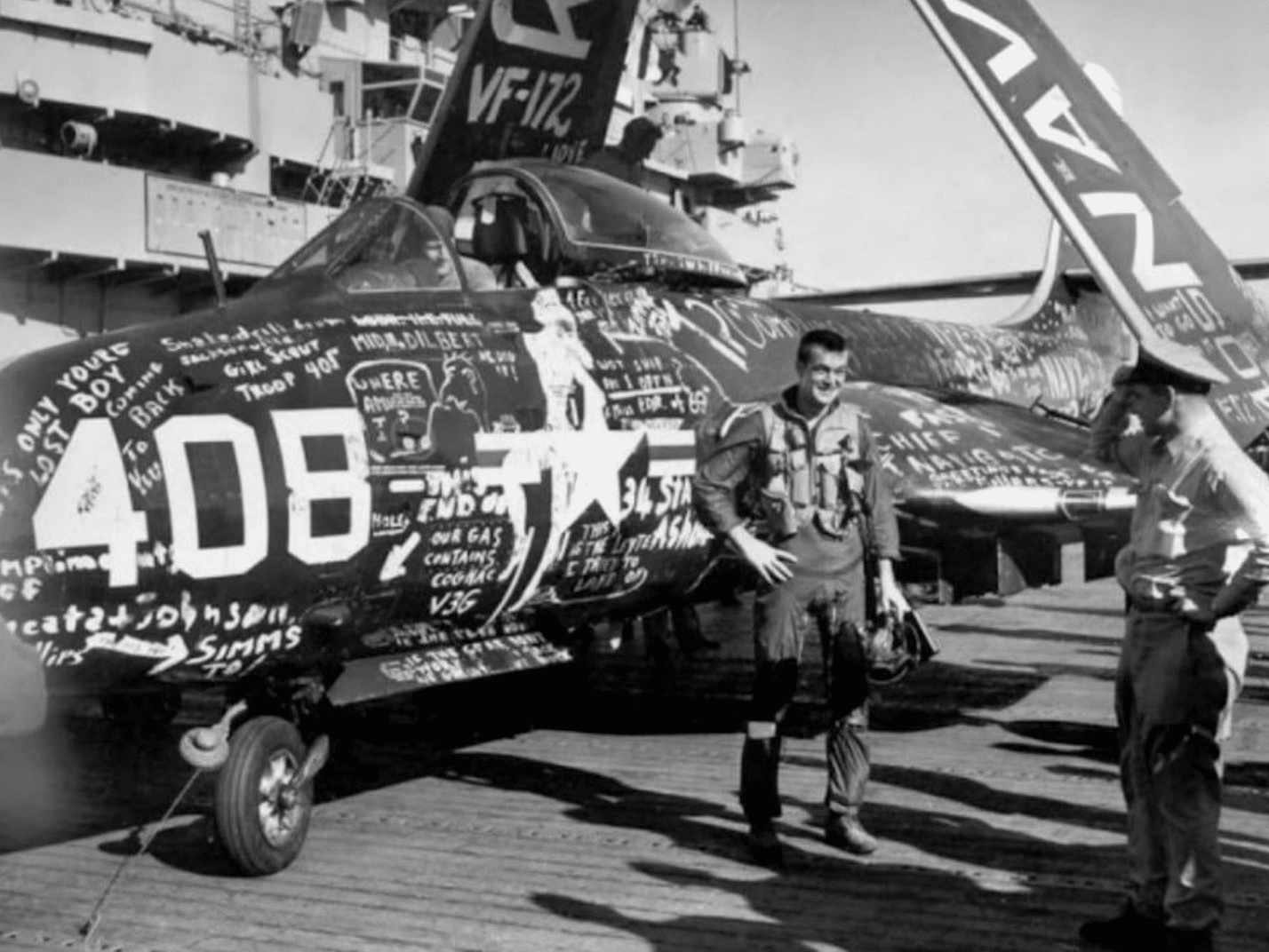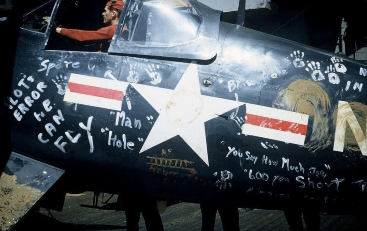 The incident of landing on the wrong carrier did not just create logistical problems; it also sparked a tradition of playful ridicule among naval personnel. When a pilot returned to his ship after realizing his error, it was common to find the aircraft decorated with humorous graffiti. The markings and slogans often mocked the pilot’s navigational error, and sometimes the native crew would even alter the aircraft’s identifying symbols to tease the mistaken visitor. One popular prank involved crossing out the ship’s decal and replacing it with an insignia of another service branch, suggesting in a light-hearted way that the pilot had not only erred in his landing but might have been better suited to another role.
